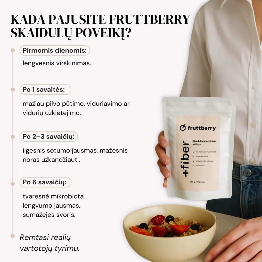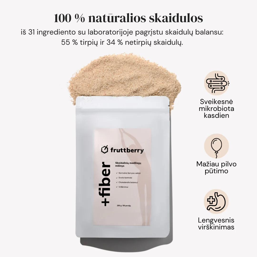 Sudėtyje esančios balkšvojo gysločio (Plantago ovata) sėklų luobelės turi daug skaidulinių medžiagų ir gali padėti palaikyti normalią cholesterolio koncentraciją kraujyje, kraujotakos sistemos bei žarnyno veiklą.