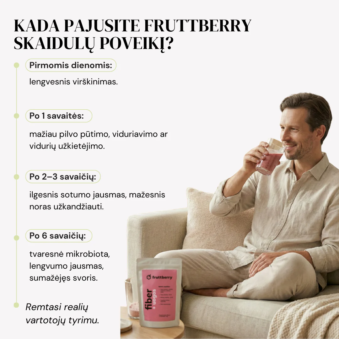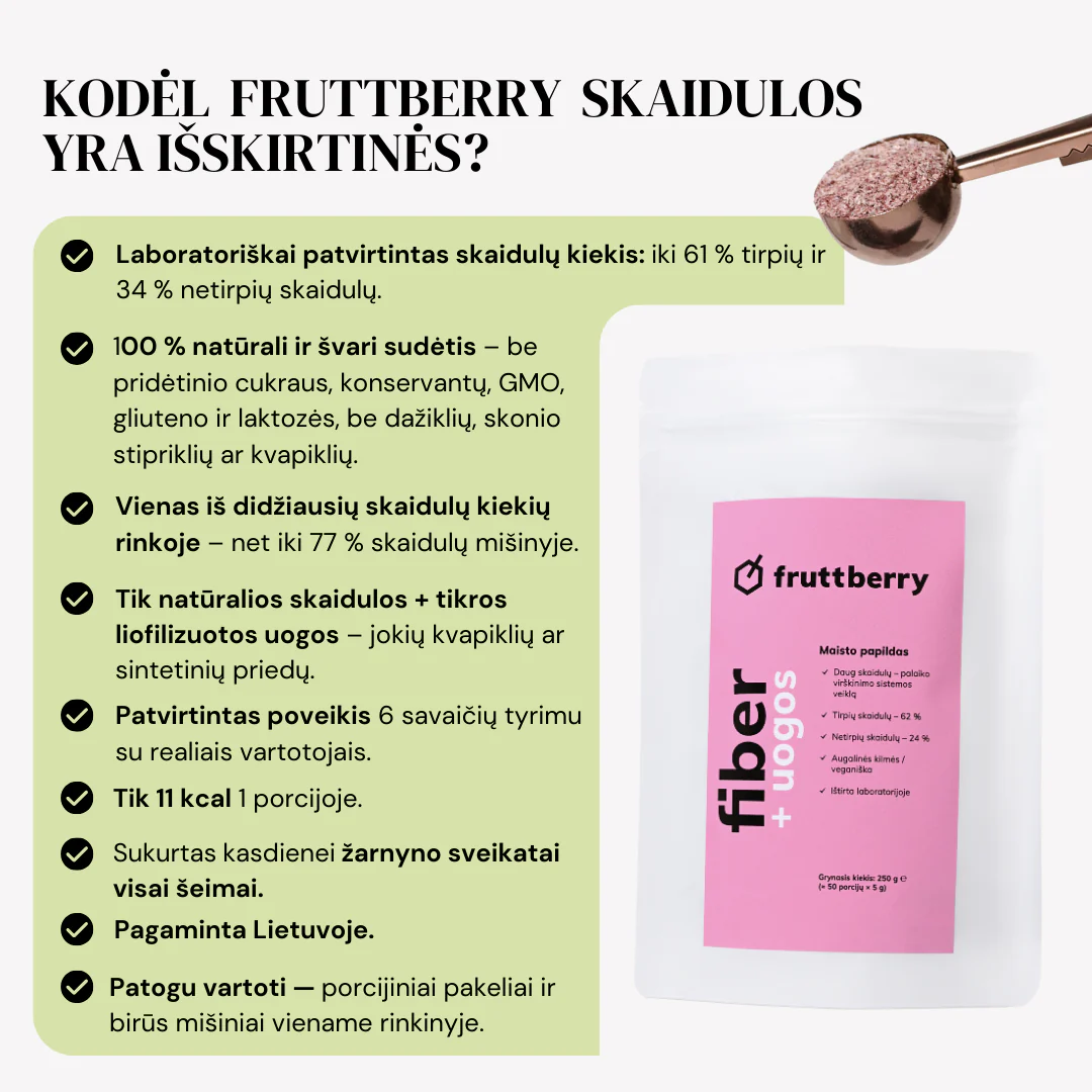 Maisto papildas fruttberry +fiber skaidulų mišinys su uogomis, 250 g